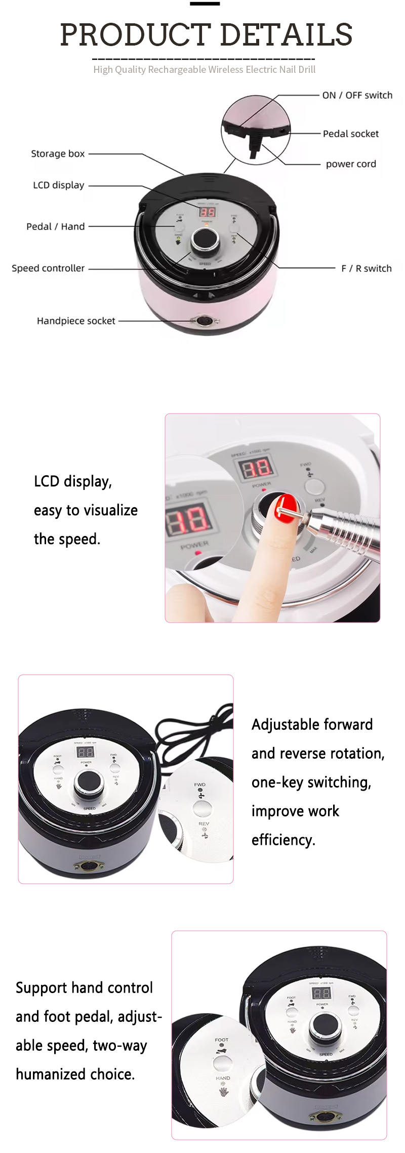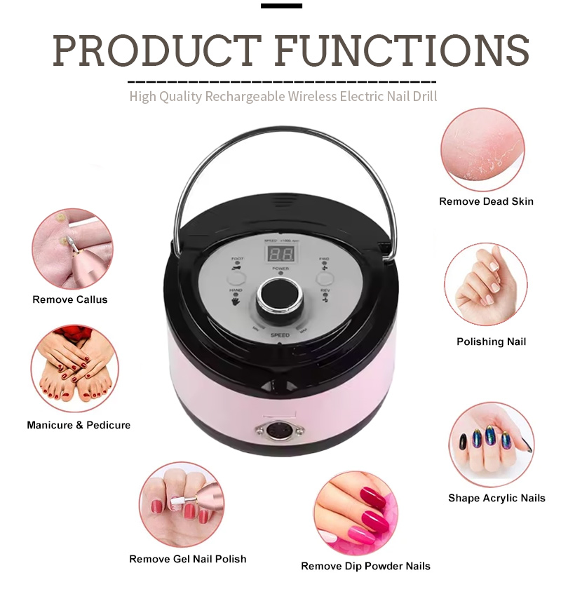 I-Cordless Nail Drill Eshajwayo futhi Isetha Uchwepheshe 45w 40000rpm