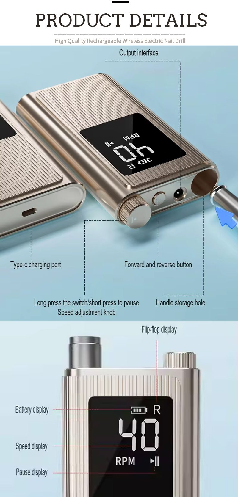 Isici Nokusetshenzwa Kwe-40,000 RPM High-Speed Professional Nail Drill