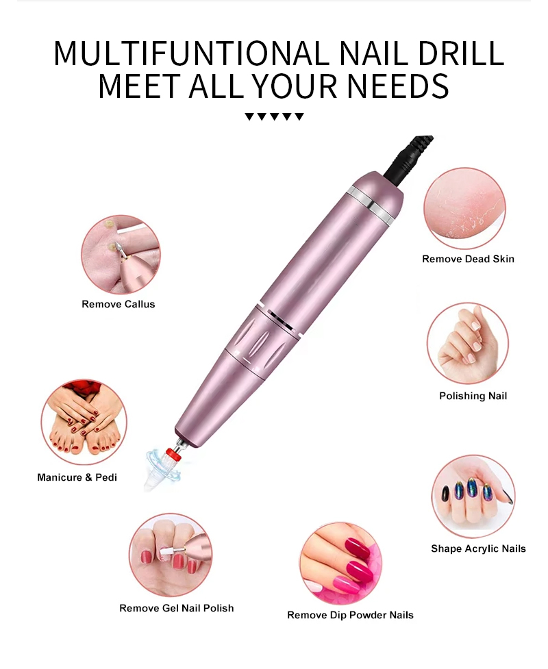 I-Portable Nail Drill Setha Ugesi NgeMotor Enamandla 65w 35000rpm