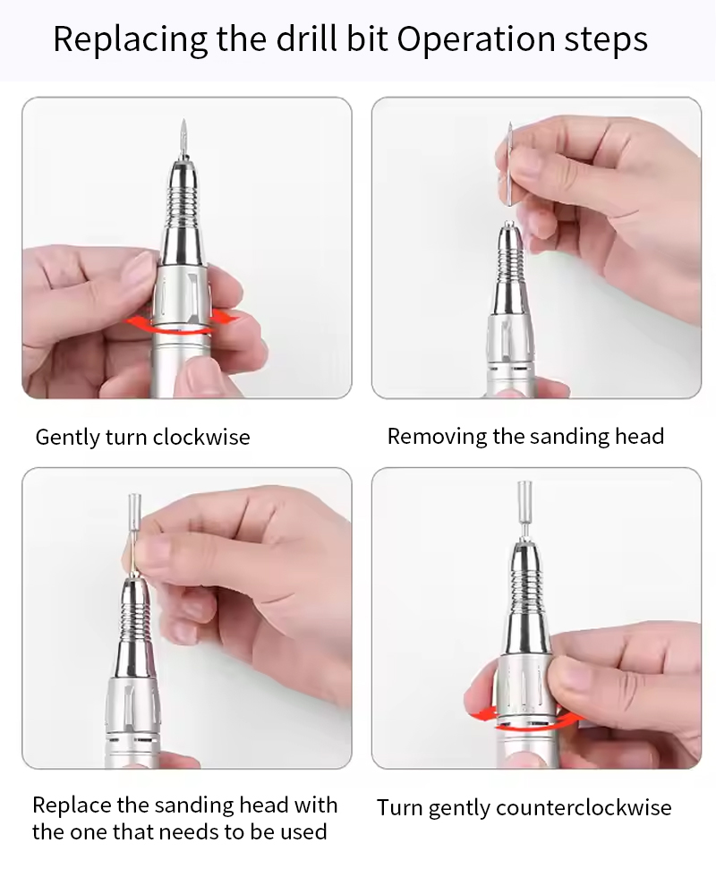I-Nail Drill Electric Akulula Ukulimaza I-Handpiece 65w 35000rpm