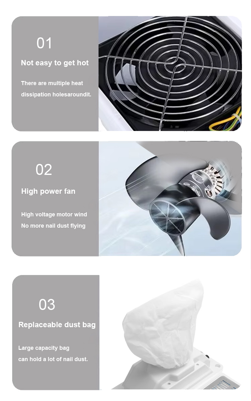 Ibhethri eliziqukayo eline-Adjustable Wind Speed Nail Vacuum