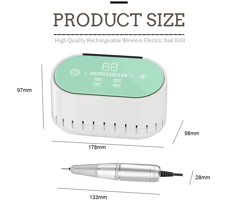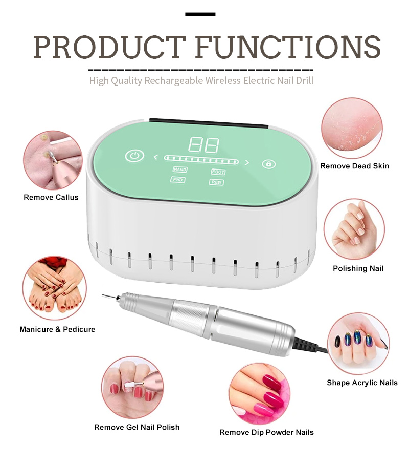 I-Cordless Nail Drill Eshajwayo futhi Isetha Uchwepheshe 45w 40000rpm