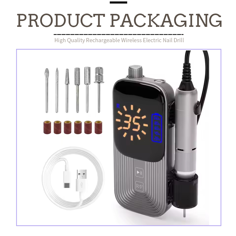 I-Portable Nail Drill Setha Ugesi NgeMotor Enamandla 65w 35000rpm