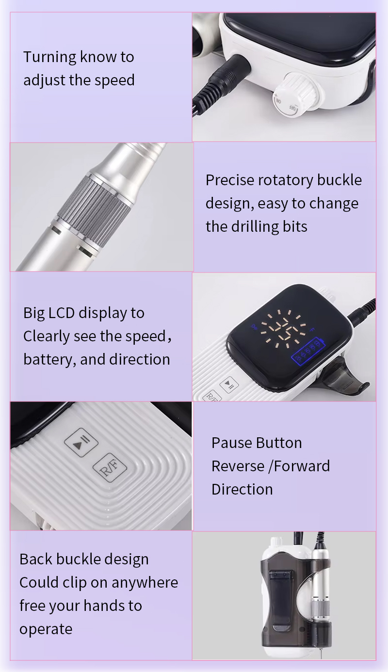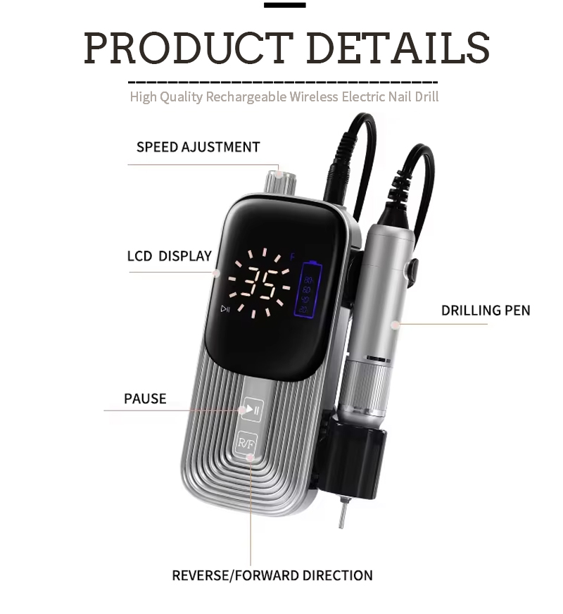 I-Nail Drill Setha Ifayela Logesi Lochwepheshe 65w 35000rpm