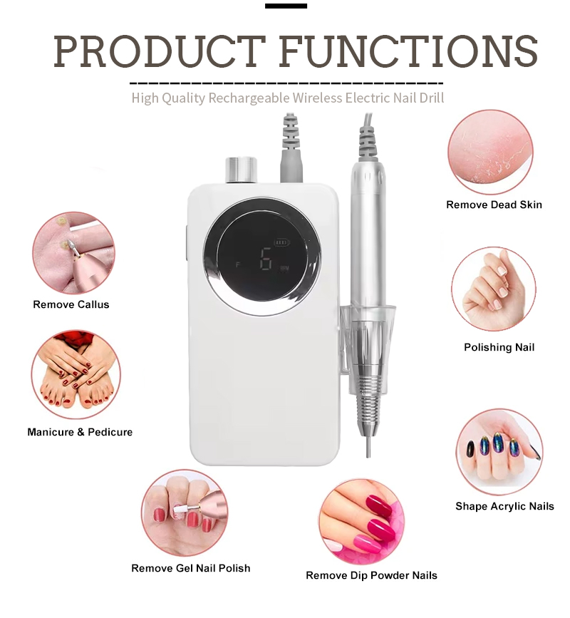 I-Portable Nail Drill Setha Ugesi NgeMotor Enamandla 65w 35000rpm