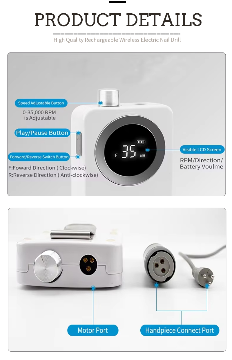 I-Nail Drill Setha Ifayela Logesi Lochwepheshe 65w 35000rpm