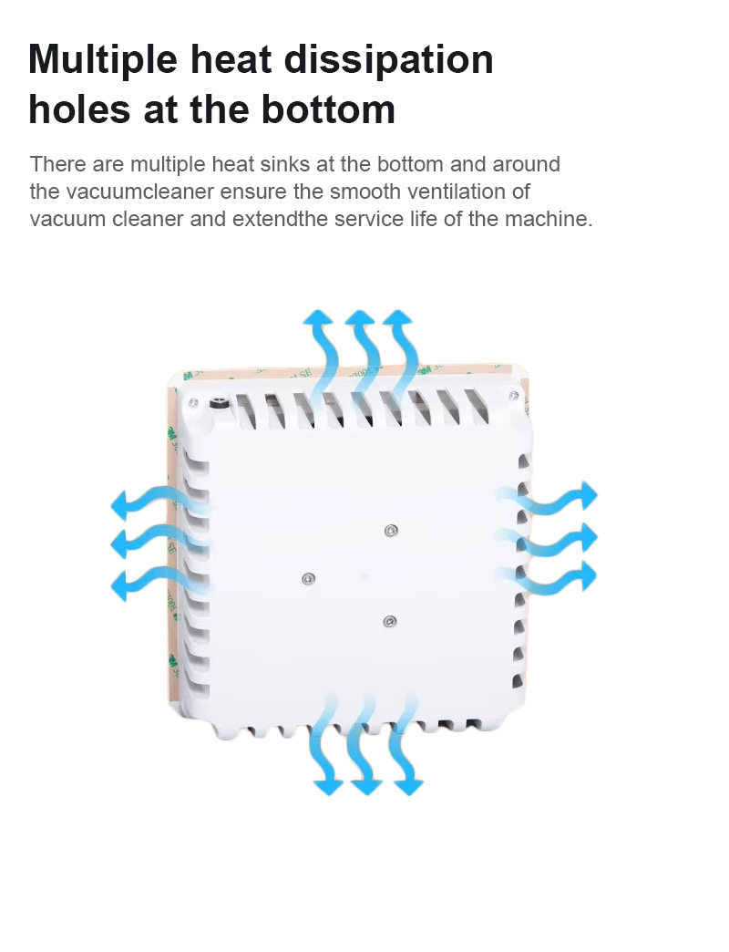 Phansi komkhiqizo kunezimbobo zokupholisa umoya omncane, kanti umshini wokuhlanza we-vacuum yakhelwe ngama-vents amaningi okupholisa phansi nakuzo zonke izinzuzo ukuze uqinisekise umoya omncane futhi unwebe impilo yomshini.