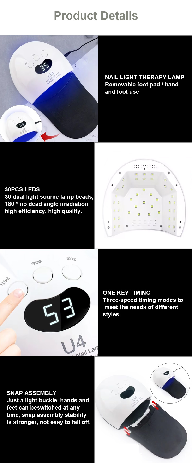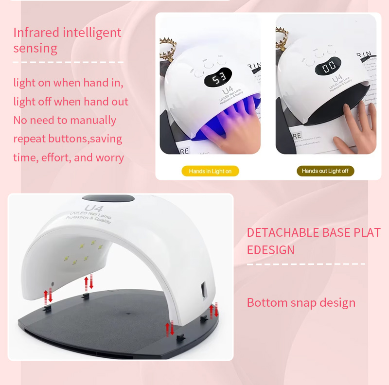 Lesi sibani sekhwalithi ephezulu se-LED sokumisa izinzipho siqinisekisa ngisho nokoma kweglue ngaphandle kokuncipha. Imithombo yayo yokukhanya okukabili ihlinzeka ngokufudumeza okuthambile ukuze kuvinjwe ukushintsha kombala kwesandla kanye nokucindezeleka kwamehlo, okufanele izandla nezinyawo zombili, kuletha imiphumela yokumisa ngokushesha ngokuphawulekayo.