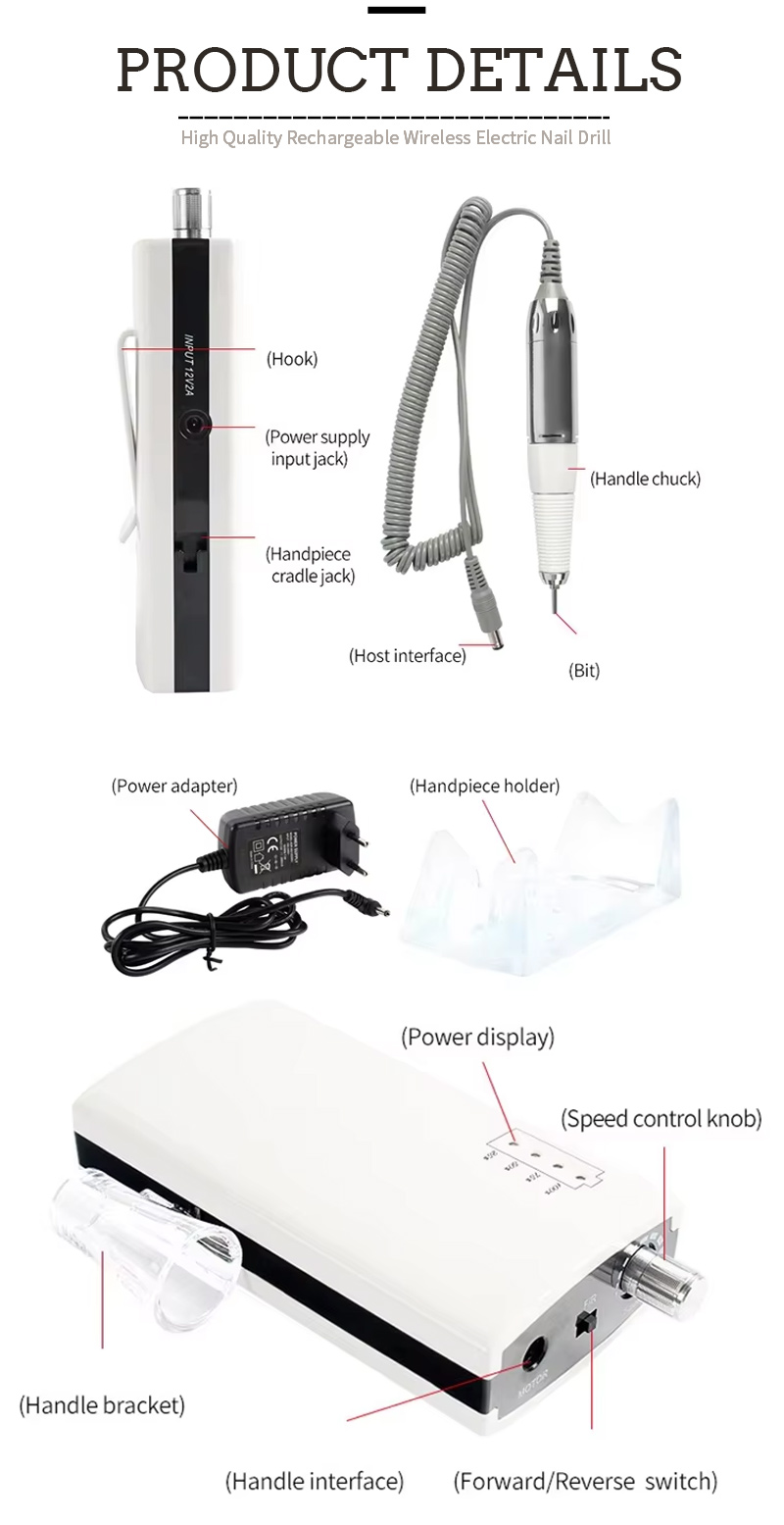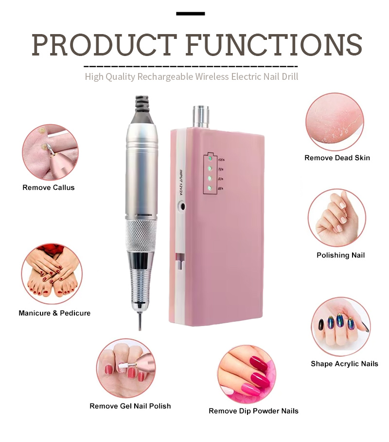 I-Cordless Nail Drill Eshajwayo futhi Isetha Uchwepheshe 45w 40000rpm