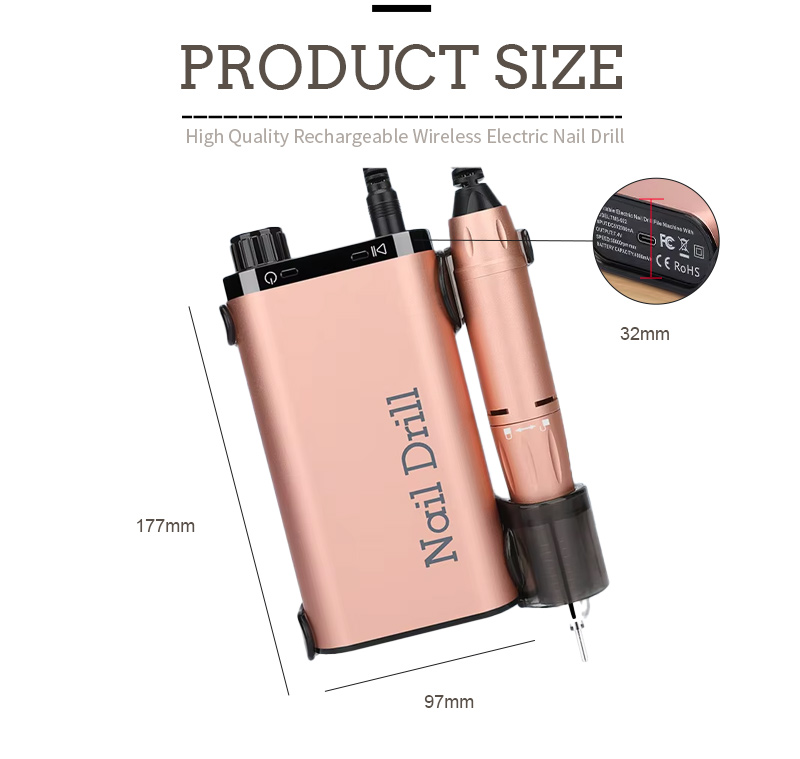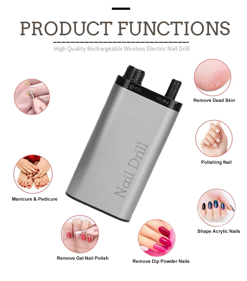 I-Portable Nail Drill Setha Ugesi NgeMotor Enamandla 65w 35000rpm