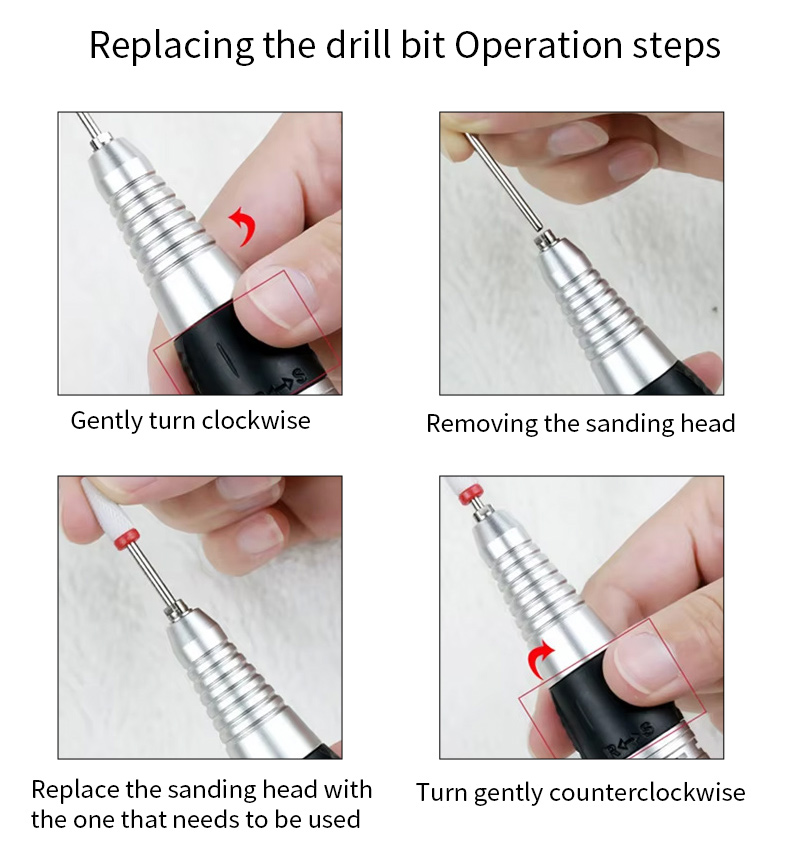 I-Nail Drill Electric Akulula Ukulimaza I-Handpiece 65w 35000rpm