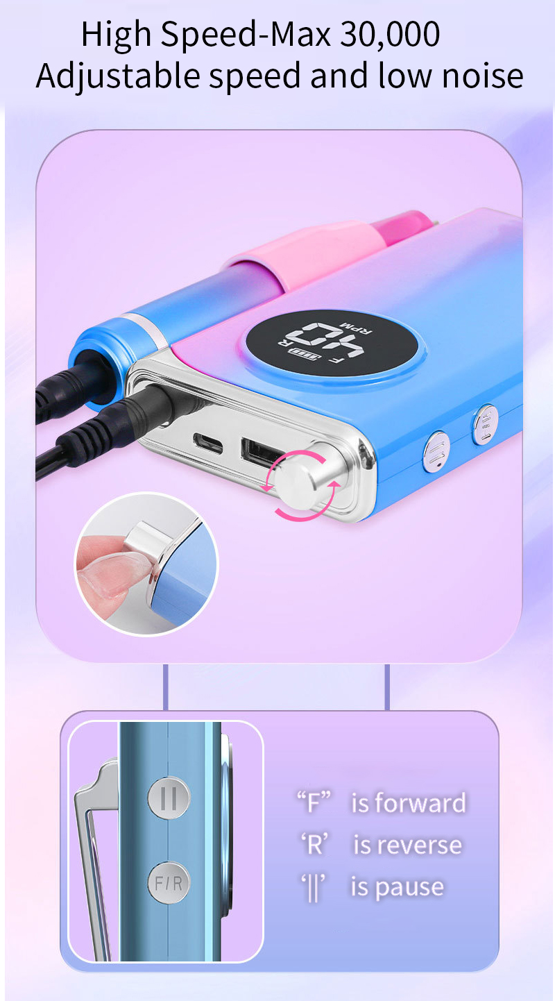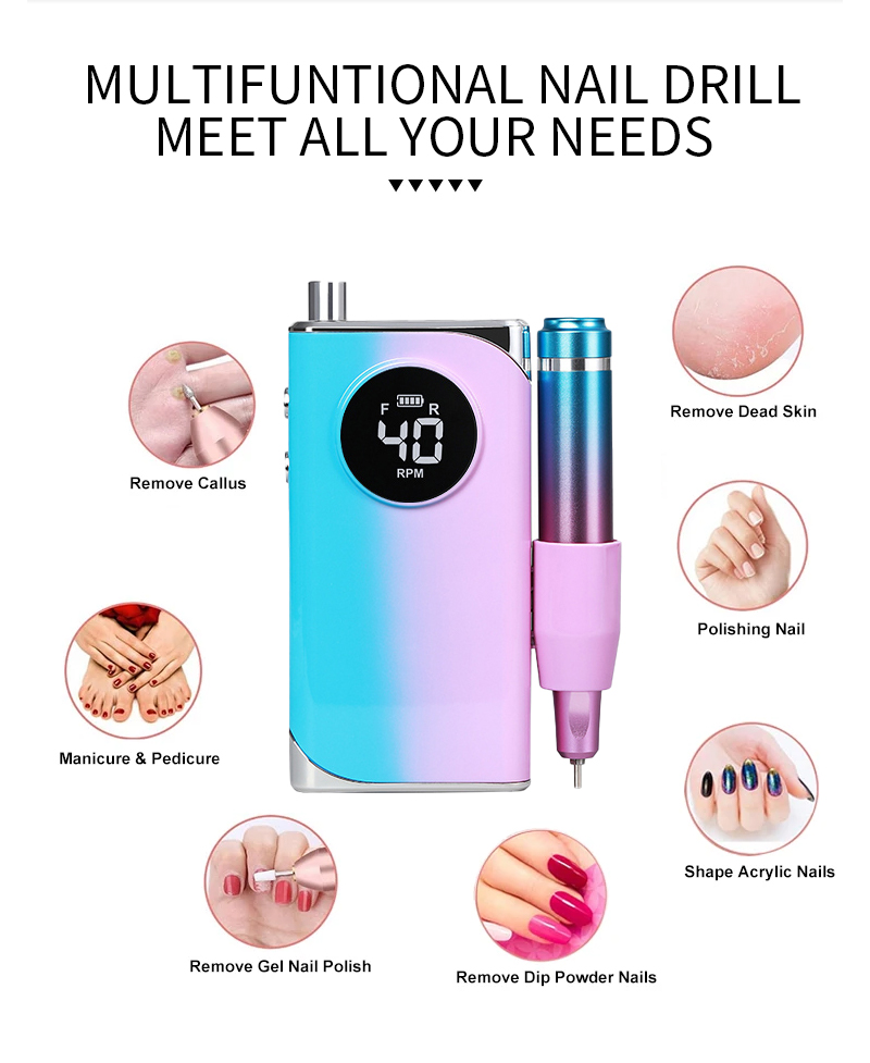 I-Portable Nail Drill Setha Ugesi NgeMotor Enamandla 65w 35000rpm