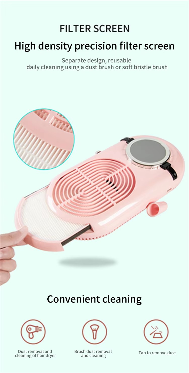 Imikhiqizo eqinile ye-adsorption ye-nail debris ayivuza uthuli, gcina i-countertop ihlanzekile futhi icocekile, ukuvalwa okusheshayo akuvuzi amandla aphezulu aphezulu.