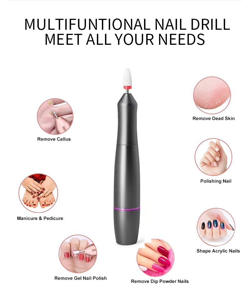 I-Portable Nail Drill Setha Ugesi NgeMotor Enamandla 65w 35000rpm