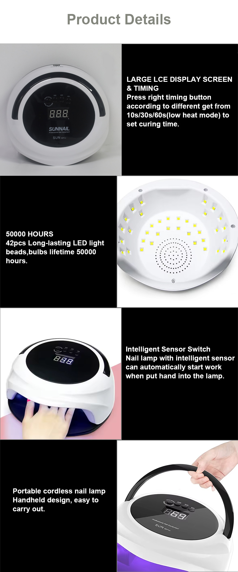 Ilambu lokumisa izinzipho elinomsebenzi wenzwa othomathikhi linobuchwepheshe be-infrared smart sensing obukhanya ngokuzenzakalelayo lapho izandla zisondela futhi sicime lapho izandla zisuka—okuqeda ubunzima bokucindezela izinkinobho ngokuphindaphindiwe nokonga isikhathi nomzamo. Iglue yokubhaka enamandla amakhulu ayidingi ukulinda isikhathi eside, yonga kokubili isikhathi nomzamo.