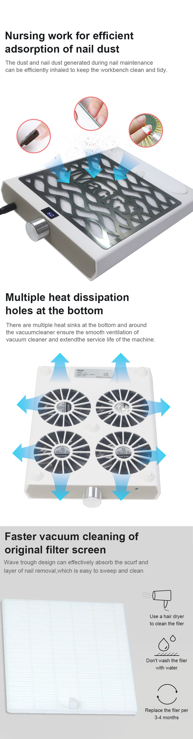 Imikhiqizo eqinile ye-adsorption ye-nail debris ayivuza uthuli, gcina i-countertop ihlanzekile futhi icocekile, ukuvalwa okusheshayo akuvuzi amandla aphezulu aphezulu.