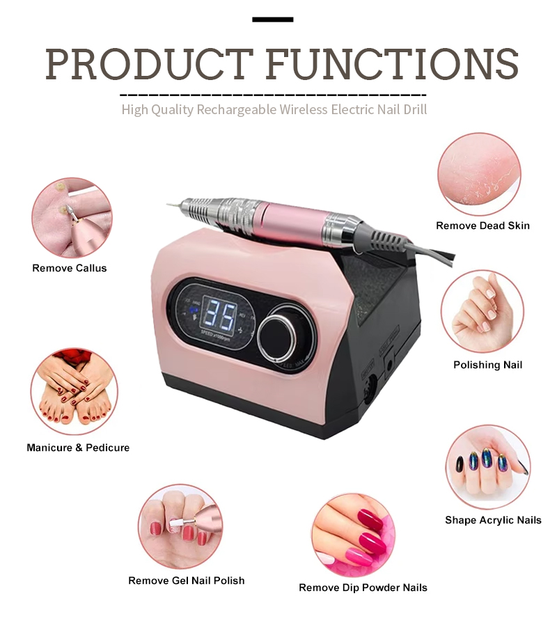 I-Portable Nail Drill Setha Ugesi NgeMotor Enamandla 65w 35000rpm