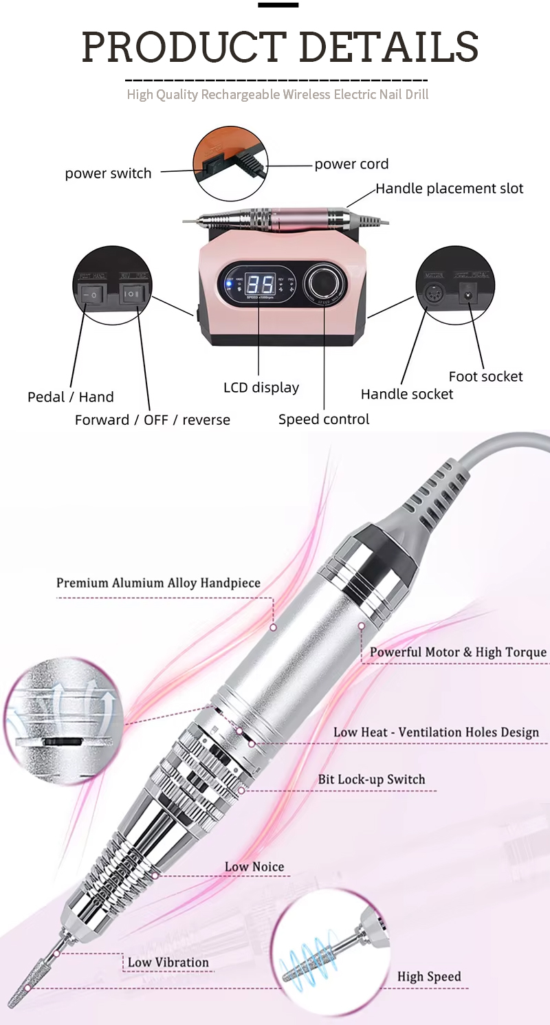 I-Nail Drill Setha Ifayela Logesi Lochwepheshe 65w 35000rpm