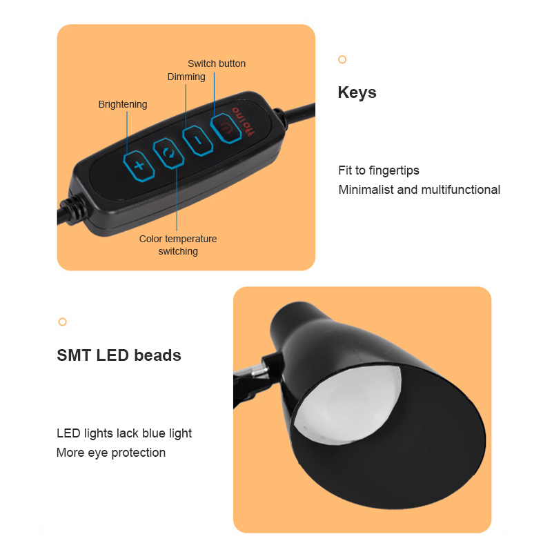 Ubukhulu bomkhiqizo buyi-30cm * 28cm * 14cm ubude, buhlangene futhi bulula, ama-degree angu-90 ukuphakama okuguquguqukayo ngokukhululekile, ukujikeleza kwe-180 degrees ukulungisa ukukhanya, okufanelekile ekamelweni, ukutadisha, eceleni kombhede nezinye izigcawu.