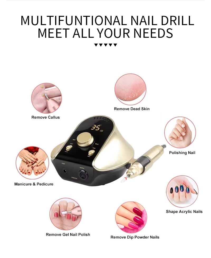 I-Portable Nail Drill Setha Ugesi NgeMotor Enamandla 65w 35000rpm