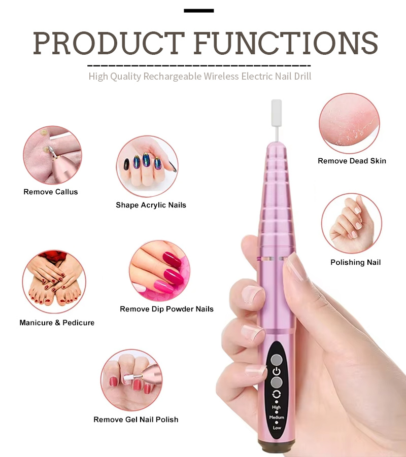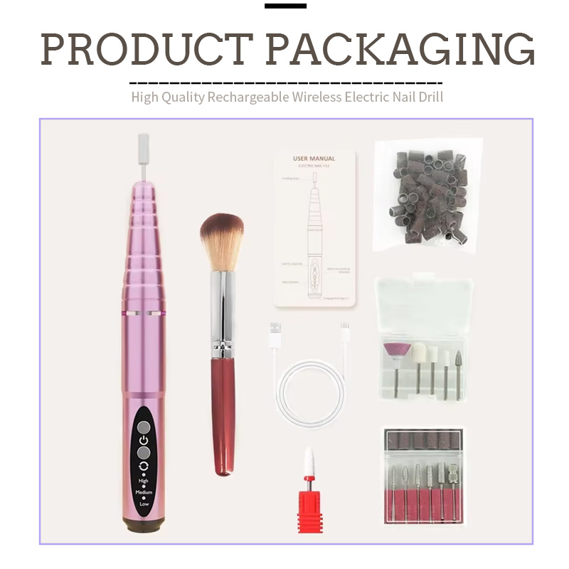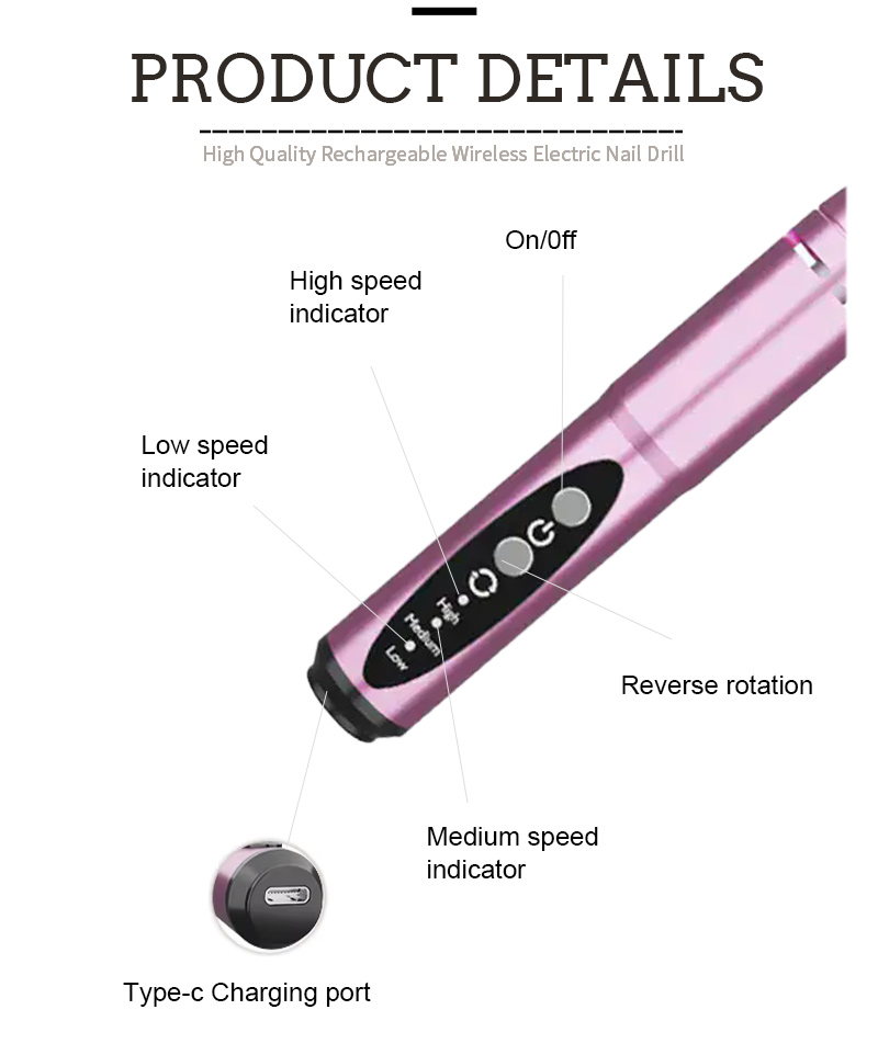 I-Portable Nail Drill Setha Ugesi NgeMotor Enamandla 65w 35000rpm