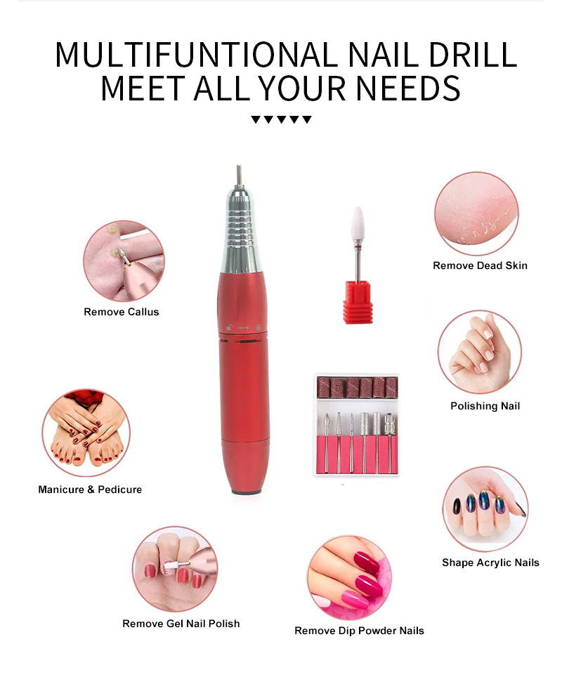 I-Portable Nail Drill Setha Ugesi NgeMotor Enamandla 65w 35000rpm