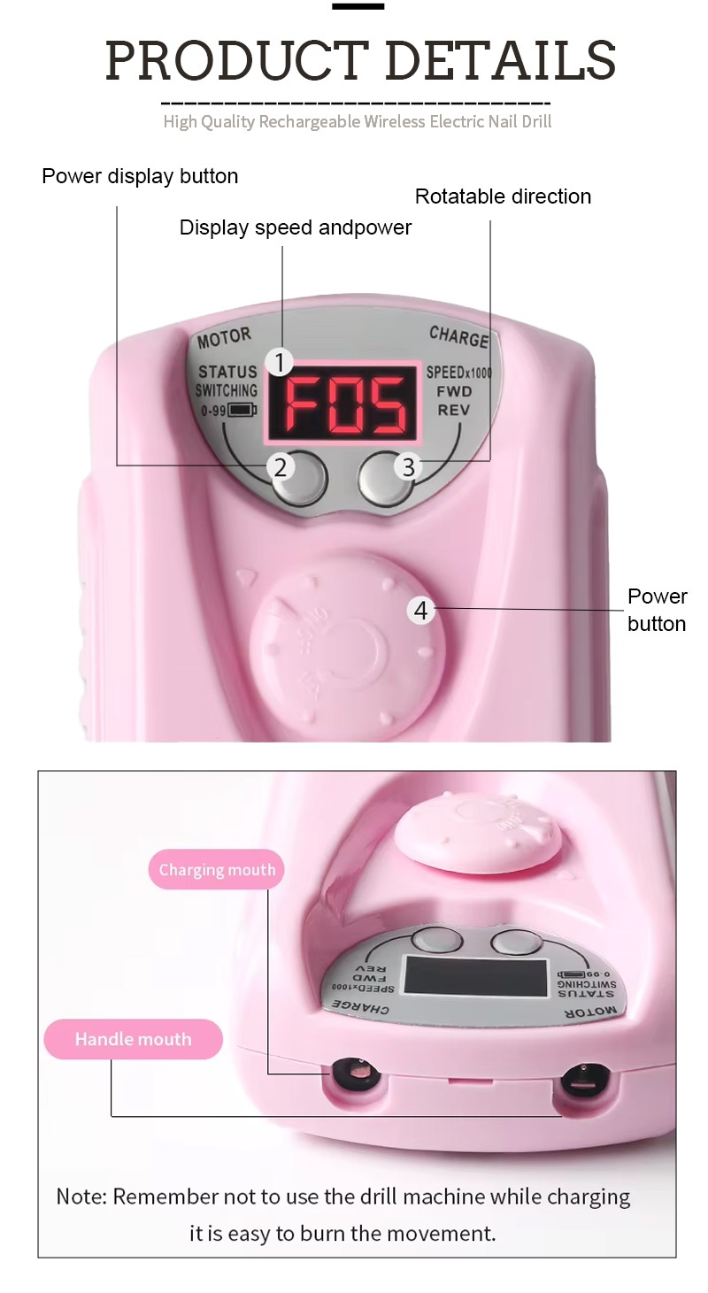 Isici Nokusetshenziswa Kwe-Professional Cordless Electric Nail Drill