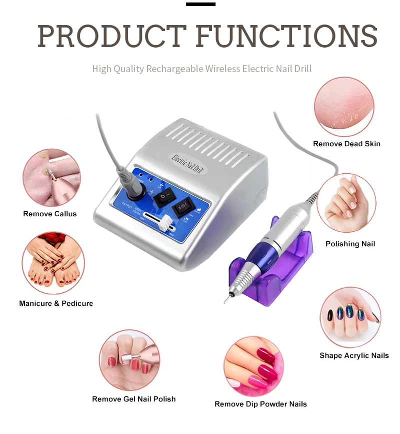 I-Portable Nail Drill Setha Ugesi NgeMotor Enamandla 65w 35000rpm