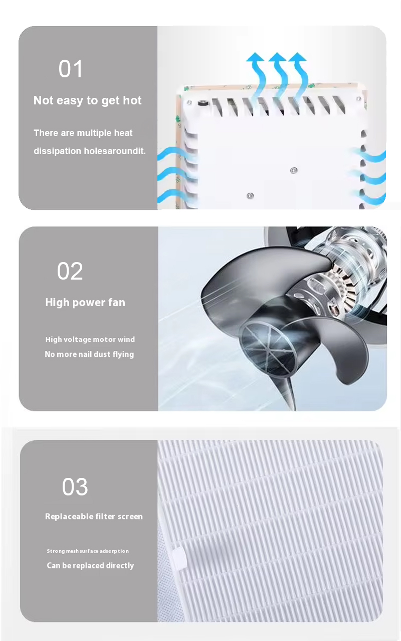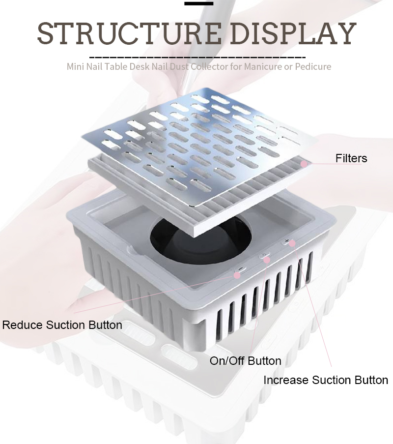 Imikhiqizo eqinile ye-adsorption ye-nail debris ayivuza uthuli, gcina i-countertop ihlanzekile futhi icocekile, ukuvalwa okusheshayo akuvuzi amandla aphezulu aphezulu.