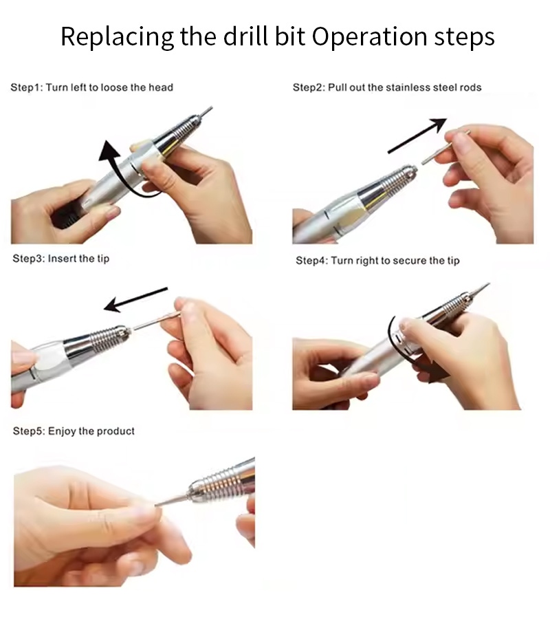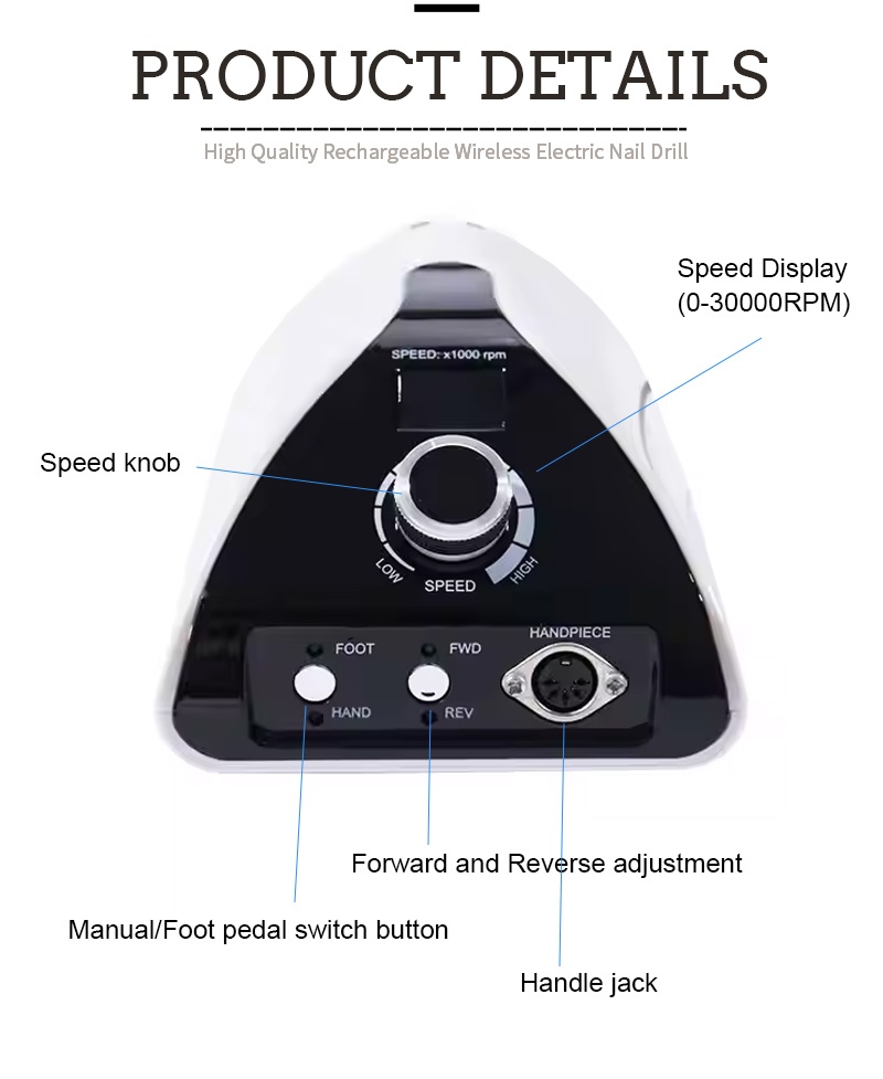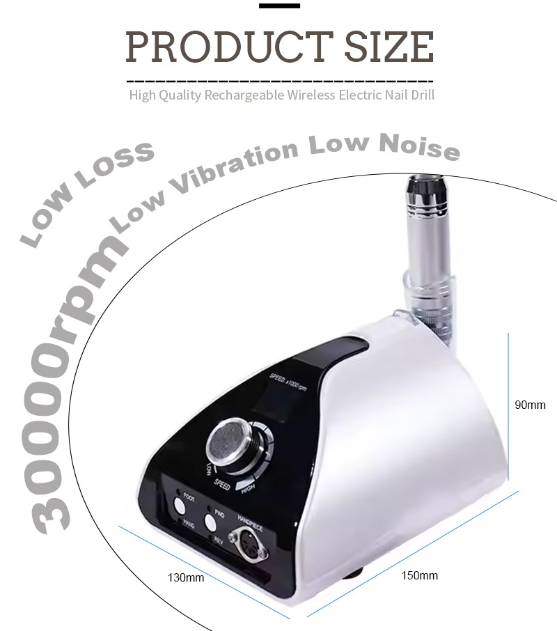 Lo mshini wokubhola izinzipho ophathwayo ongu-35,000 rpm wokuprakthiza indlela yokusebenza, okungukuthi, ukuxhuma nokukhipha, kulula futhi kulula, ukushintshwa kungasetshenziswa ngemva kokuqedwa.