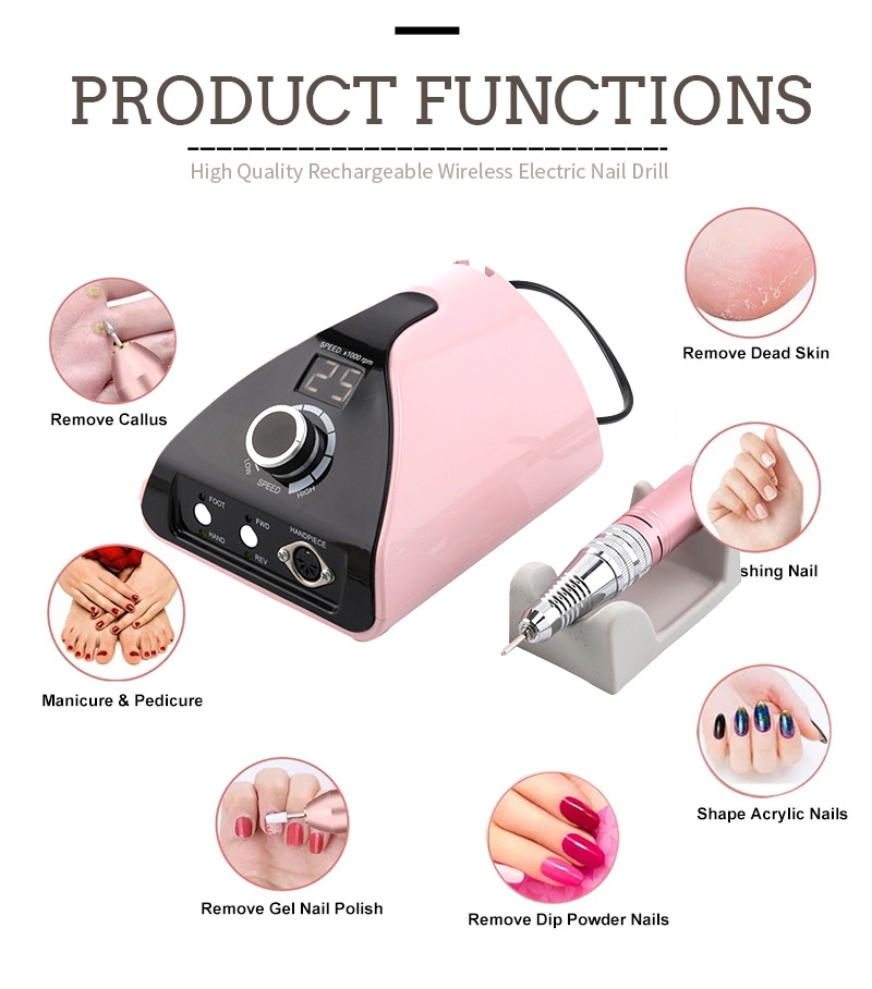 I-Portable Nail Drill Setha Ugesi NgeMotor Enamandla 65w 35000rpm